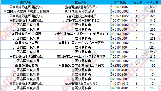 報(bào)名通過審核人數(shù)前十的職位主要集中在江西省國家稅務(wù)局、國家統(tǒng)計(jì)局江西調(diào)查總隊(duì)具體信息如下: