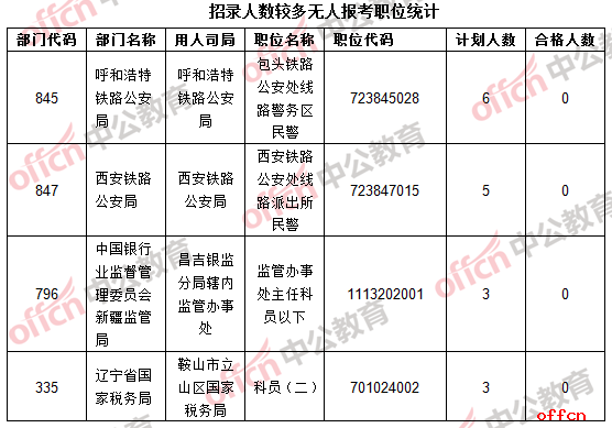 國考招錄面向全國各地,涵蓋各部門、各系統,考生出于地域、門檻等因素的考慮會在選擇職位時有所偏向,因此,冷熱不均的局面就產生了。目前仍有438個職位報考人數還未破零,占總職位數的2.8%,中央黨群機關以及中央國家行政機關(本級)這兩個系統目前都僅剩1個職位無人報考,分別為國家外國專家局經濟技術專家司項目處主任科員及以下(職位代碼407002001),中共中央對外聯絡部二局蒙古語翻譯(職位代碼102004002),希望符合條件的考生重點考慮以上兩個職位。