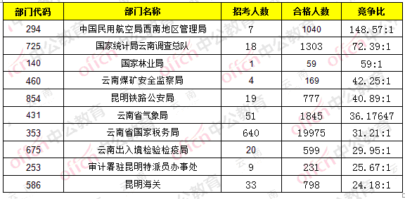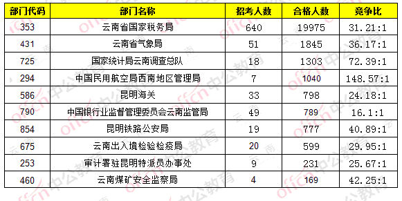 為幫助廣大考生更清晰地了解今日報名情況,云南中公網校整理了審核通過人數部門排名,供廣大考生參考: