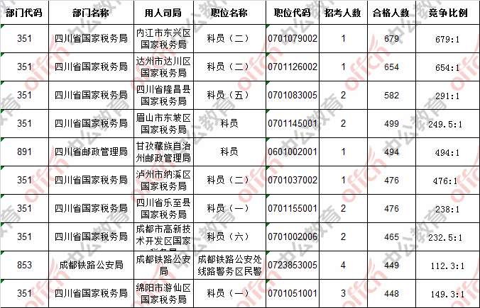 首日報名通過審核人數前十的職位主要集四川省國家稅務局等部門,具體信息如下: