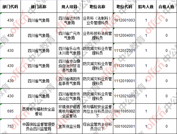 截止到23日16時,工作地點在四川的職位仍有8個無人報考,四川中公網校專家建議廣大考生多關注一些較冷職位,避免激烈競爭,結合自身條件,找到屬于自己的職位。