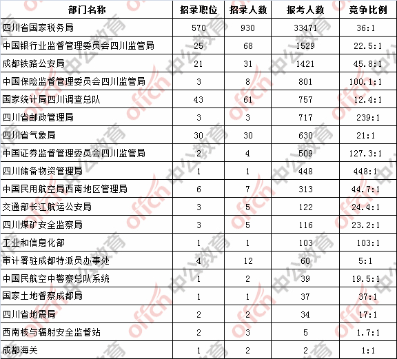【截至23日16時】2017國考報名四川41114人過審,最熱職位679:1