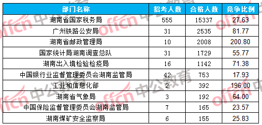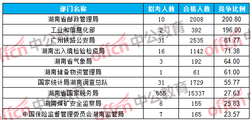 為幫助廣大考生更清晰的了解今日?qǐng)?bào)名情況,湖南中公網(wǎng)校整理了審核通過人數(shù)前十大部門以及競爭比例最激烈的十大部門,供廣大考生參考: