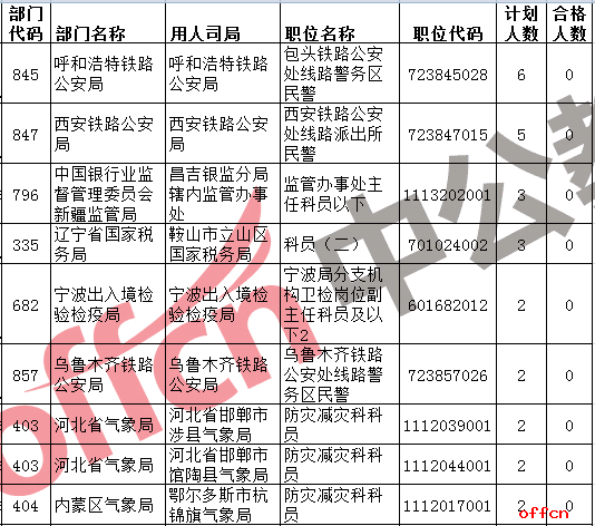 【23日16時】2017國考報名人數統計:1365個低于面試比例職位匯總(含380個無人報考職位)