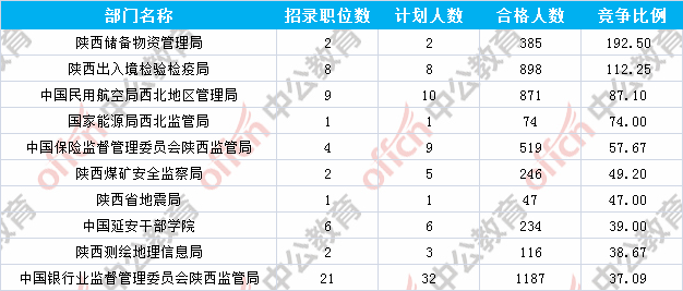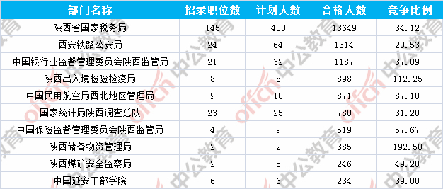 報(bào)名通過審核人數(shù)前十的職位主要集中在陜西省國家稅務(wù)局、中國民用航空局西北地區(qū)管理局、陜西出入境檢驗(yàn)檢疫局等部門,具體信息如下: