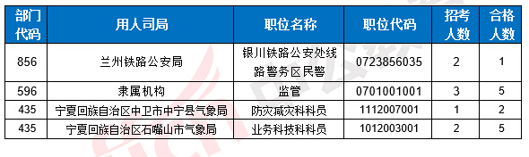 合格人數前十的職位主要集中在寧夏回族自治區國家稅務局、中國保險監督管理委員會寧夏監管局、國家林業局等部門,具體信息如下: