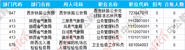 截止到24日8時,工作地點在陜西的職位共有6個無人報考,占全部職位的2.13%。下面是無人報考職位一覽表,陜西中公網校專家建議廣大考生多關注一些較冷職位,避免激烈競爭,結合自身條件,找到屬于自己的職位。