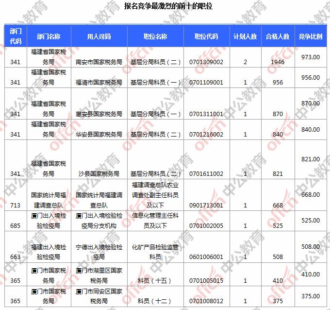 截止到24日8時,競爭比例的職位為福建省國家稅務局南安市國家稅務局基層分局科員(二)一職,招錄2人,截止到24日8時通過人數為1946人