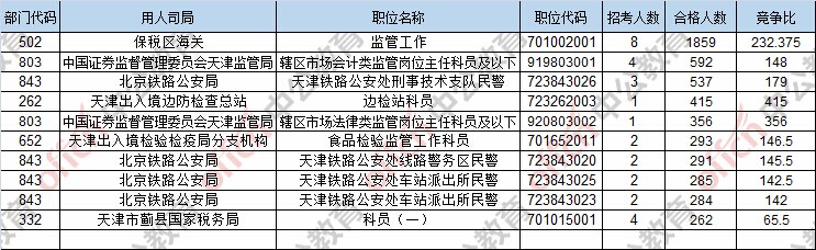 報名通過審核人數(shù)前十的職位主要集中在保稅區(qū)海關、中國證券監(jiān)督管理委員會天津監(jiān)管局、北京鐵路公安局,具體信息如下: