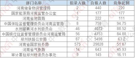 截止24日17:30,通過審核人數前三位的部門依次是:河南省國家稅務局、鄭州鐵路公安局,中國銀行業監督管理委員會河南監管局,三部門通過審核總人數40079人,占通過審核總人數的86.08%。