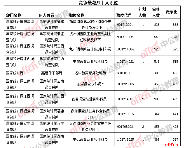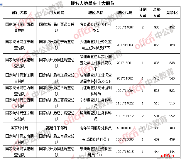 2017國考報(bào)名結(jié)束:統(tǒng)計(jì)局過審45491人 平均競(jìng)爭(zhēng)比51:1