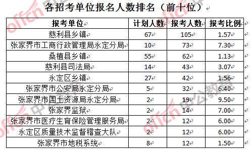 二、張家界公務員報名人數:各招考單位分析