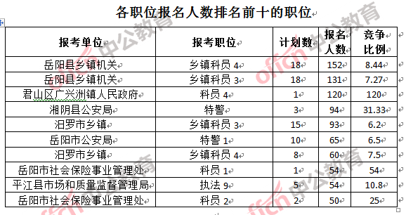 一、岳陽(yáng)公務(wù)員報(bào)名人數(shù):各職位分析