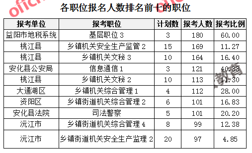 一、益陽公務員報名人數:各職位分析