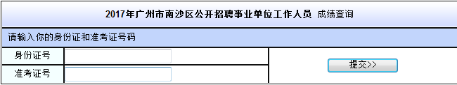 2017廣東南沙區事業單位招聘考試筆試成績查詢入口