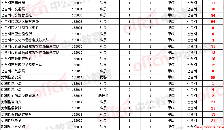 2014年黑龍江公務員七臺河公務員考試繳費人數統計表[5月18日]