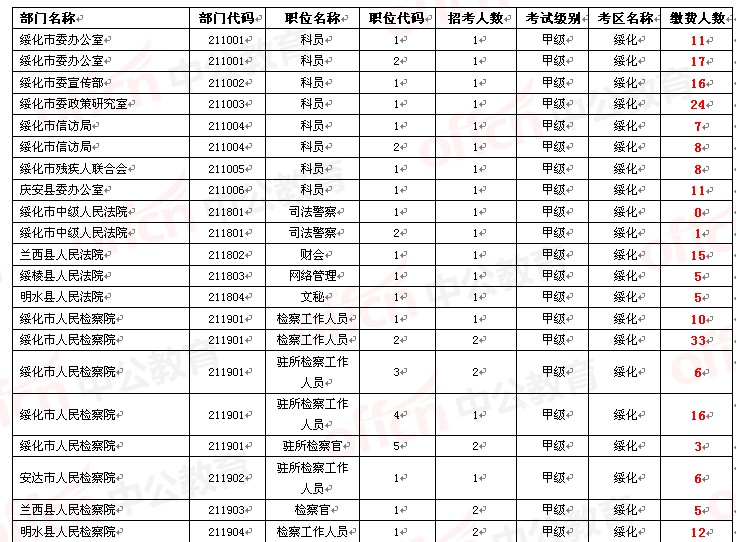 2014年黑龍江公務(wù)員綏化省考報(bào)名繳費(fèi)人數(shù)統(tǒng)計(jì)[5月18日]