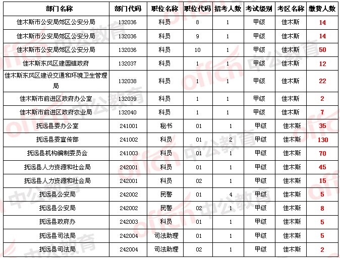 【佳木斯地區】2014年黑龍江省公務員考試繳費人數統計[5.19]