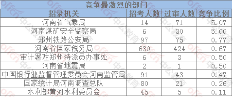 為幫助廣大考生更清晰的了解今日報名情況,中公網校整理了審核通過人數前十位的部門以及競爭比例最激烈的十大部門,供廣大考生參考: