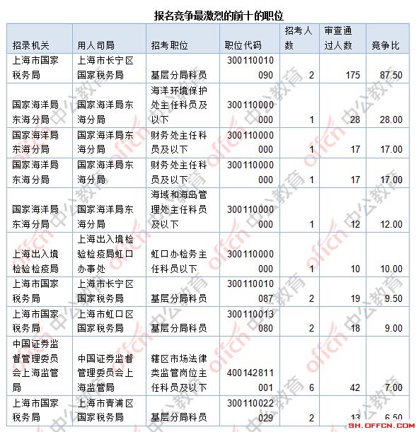 [31日10時]2018國考報名數據:上海737人過審 最熱競爭比87.5:1