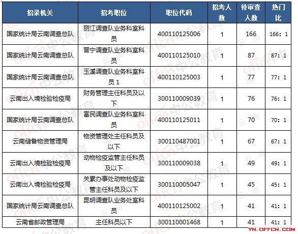 截止10月31日18時,國考報名第二天,國家統計局云南調查總隊,部門代碼:152125,直屬機關黨委辦公室主任科員及以下崗位,職位代碼:400110025008,招錄1人,審查通過人數為55人,具體信息如下: