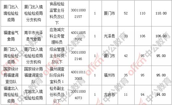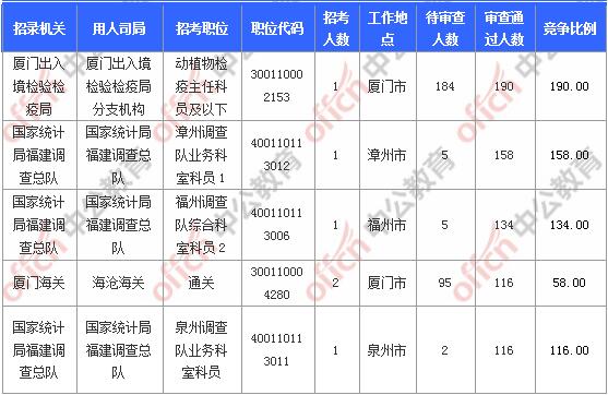 報(bào)名通過審核人數(shù)前十的職位主要集中在廈門出入境檢驗(yàn)檢疫局、國家統(tǒng)計(jì)局福建調(diào)查總隊(duì)、廈門海關(guān),具體信息如下: