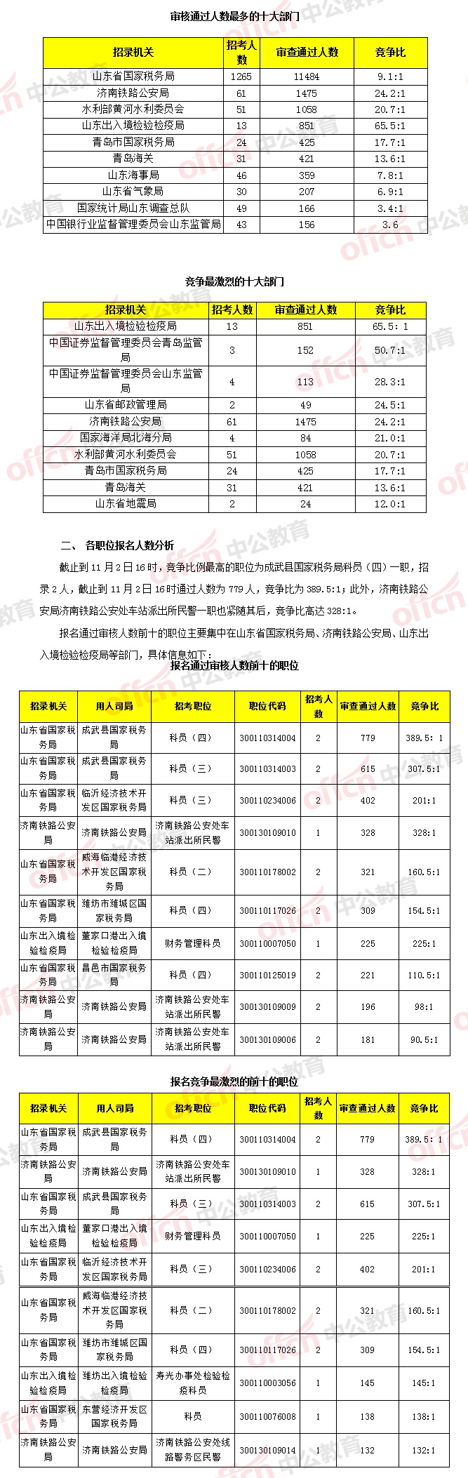 [11月2日16時]2018國考報名數據:山東報名人數破2萬 17272人過審 最熱職位已達389.5:1
