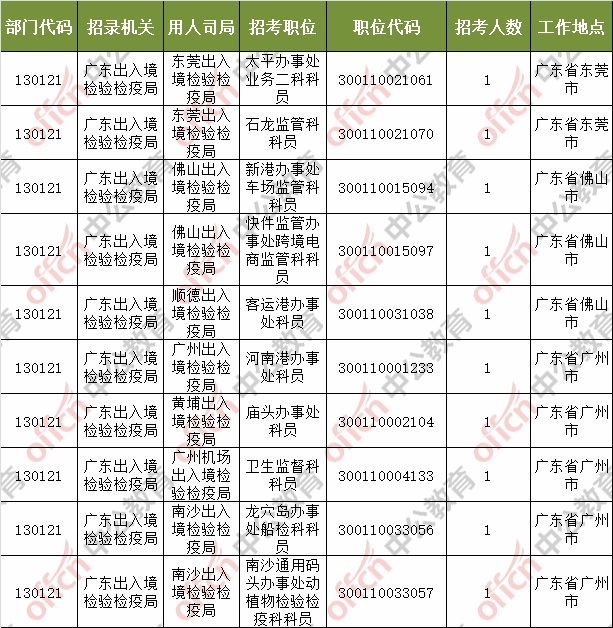 截止到2日16時,工作地點在廣東的職位共有183個無人報考,占全部職位的13.9%。下面是無人報考職位一覽表,中公教育專家建議廣大考生多關注一些較冷職位,避免激烈競爭,結合自身條件,找到屬于自己的職位。