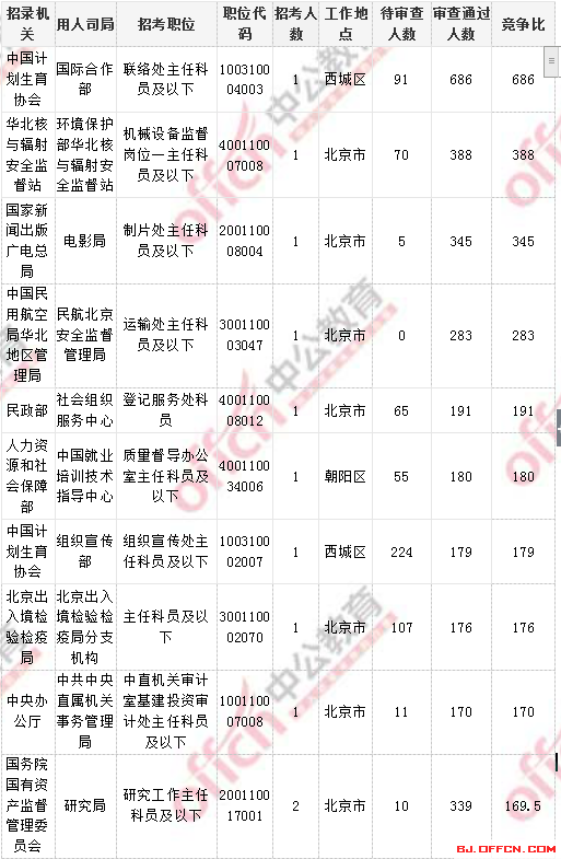 一、北京地區招錄大戶——國稅 競爭比7:1