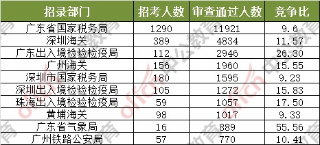 截止到2日16時(shí),通過(guò)審核人數(shù)前三位的部門(mén)依次是:廣東省國(guó)家稅務(wù)局、深圳海關(guān)、廣東出入境檢驗(yàn)檢疫局,三部門(mén)通過(guò)審核總?cè)藬?shù)達(dá)19701人,占通過(guò)審核總?cè)藬?shù)的62.2%。