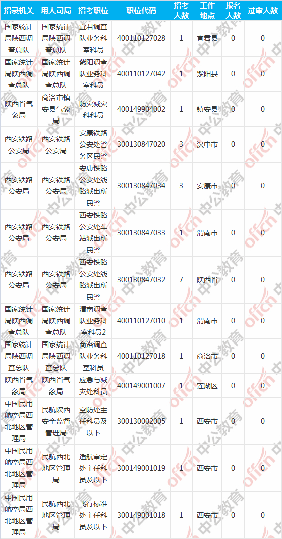 截至到3日9時,工作地點在陜西的職位共有13個無人報考,占全部職位的4.52%。下面是無人報考職位一覽表,中公網校專家建議廣大考生多關注一些較冷職位,避免激烈競爭,結合自身條件,找到屬于自己的職位。