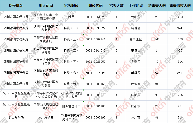 第五日報名通過審核人數(shù)前十的職位主要集四川省國家稅務局等部門,具體信息如下: