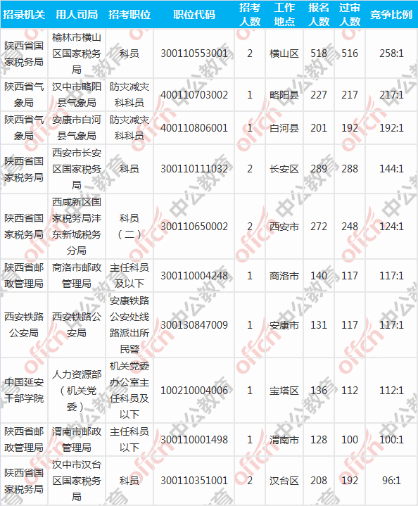 [3日16時]2018陜西國考報名人數統計:陜西9806人過審 最熱職位258:1