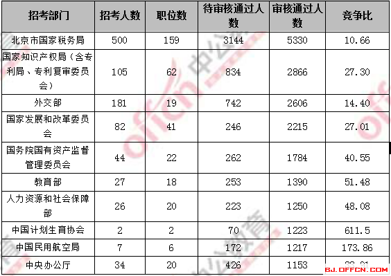 一、北京地區招錄大戶——國稅 競爭比11:1