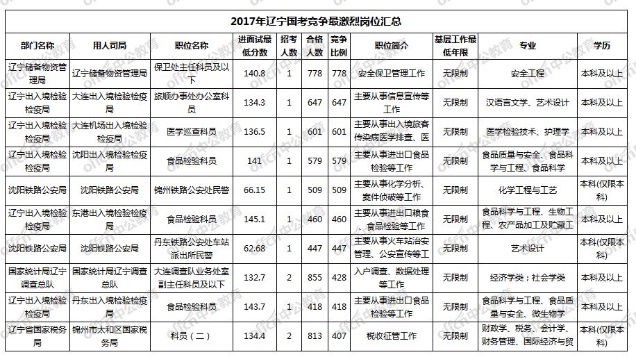 據(jù)遼寧中公網校統(tǒng)計,每年國考都會涌現(xiàn)出一批熱門職位,競爭力非常激烈,可謂萬里挑一。如2017國考的遼寧儲備物資管理局-保衛(wèi)處主任科員及以下一職招錄1人,有778人報名(數(shù)據(jù)截至2016年10月24日17時30分),競爭比接近800:1,熱度可見一斑。
