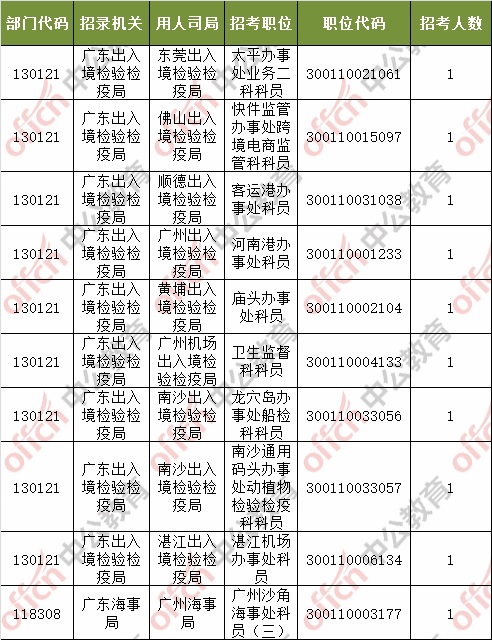 截止到4日16時(shí),工作地點(diǎn)在廣東的職位共有95個(gè)無人報(bào)考,占全部職位的7.2%。下面是無人報(bào)考職位一覽表,中公教育專家建議廣大考生多關(guān)注一些較冷職位,避免激烈競爭,結(jié)合自身?xiàng)l件,找到屬于自己的職位。