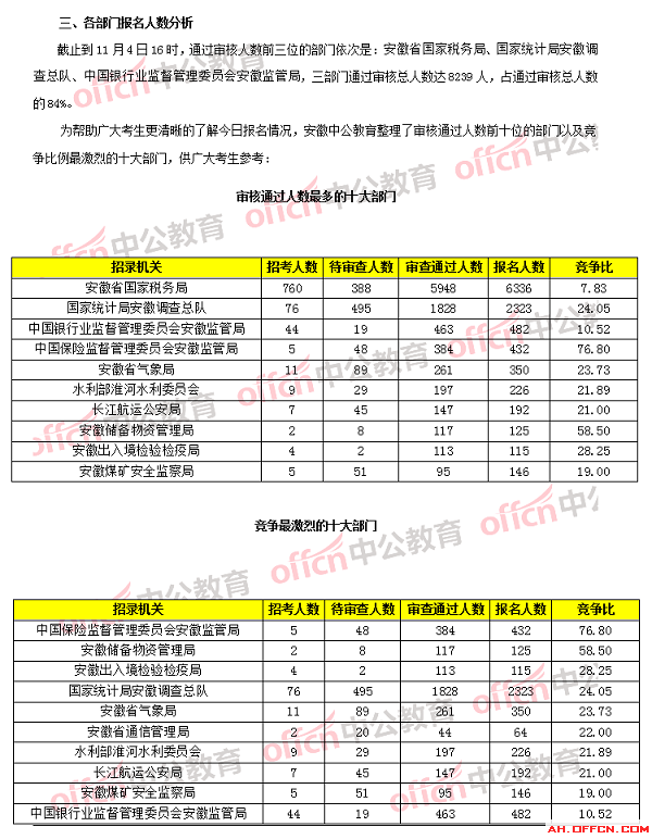 【11月4日16時(shí)】2018國(guó)考報(bào)名人數(shù)統(tǒng)計(jì):安徽9787人通過審核,最熱職位122:1
