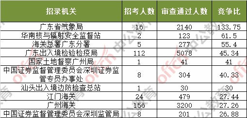 截止到4日16時,通過審核人數(shù)前三位的部門依次是:廣東省國家稅務(wù)局、深圳海關(guān)、廣東出入境檢驗檢疫局,三部門通過審核總?cè)藬?shù)達27454人,占通過審核總?cè)藬?shù)的61.2%。