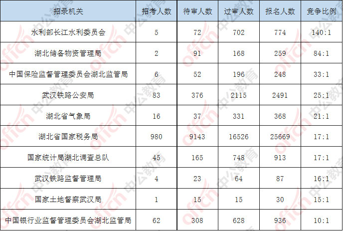 湖北報名競爭最激烈的十大部門