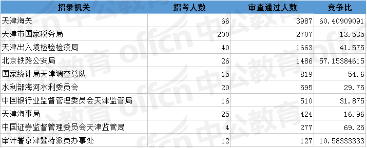 截止到7日16時,通過審核人數(shù)前三位的部門依次是:天津海關、天津市國家稅務局、北京鐵路公安局,三部門通過審核總?cè)藬?shù)達8357人。