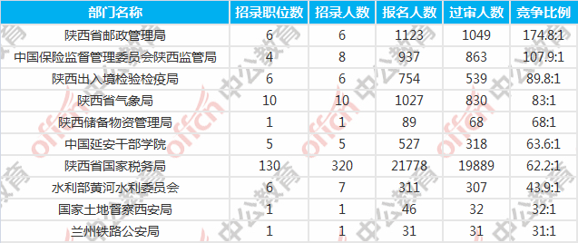 截至到7日16時,通過審核人數前三位的部門依次是:陜西省國家稅務局、西安鐵路公安局、國家統計局陜西調查總隊,三部門通過審核總人數達22488人,占通過審核總人數的80.4%。
