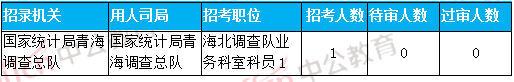 截至到7日16時,工作地點在青海的職位只有1個無人報考,共招錄1人。用人司局是國家統計局青海調查總隊,招錄1人,現還沒有人報名和通過審核。