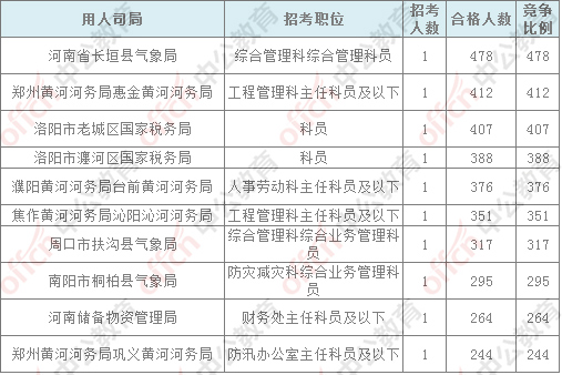 報(bào)名通過審核人數(shù)前十的職位主要集中在鄭州鐵路公安局、河南省氣象局、河南省國家稅務(wù)局,具體信息如下: