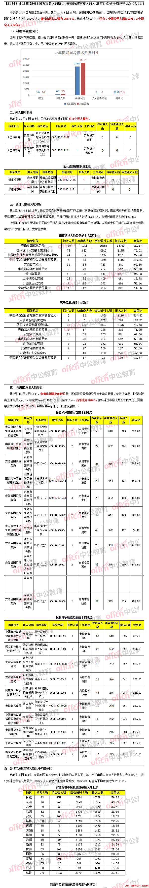 【11月8日16時】2018國考報名人數統計:安徽通過審核人數為26777,全省平均競爭比為27.41:1
