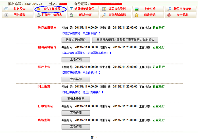 1、點擊報名工作流程會顯示如圖2-1頁面: