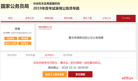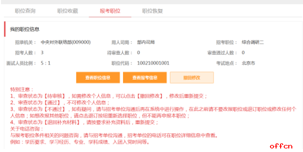 在選完職位要時刻注意自己的審查結果,注意查看自己時候通過審核。報考人員請于2018年10月22日至11月2日期間登錄考錄專題網站查詢是否通過資格審查。通過資格審查的,不能再報考其他職位。2018年10月22日8:00至10月31日18:00期間,報考申請尚未審查或未通過資格審查的,可以改報其他職位。2018年10月31日18:00至11月2日18:00期間,報考申請未審查或未通過資格審查的,不能再改報其他職位。