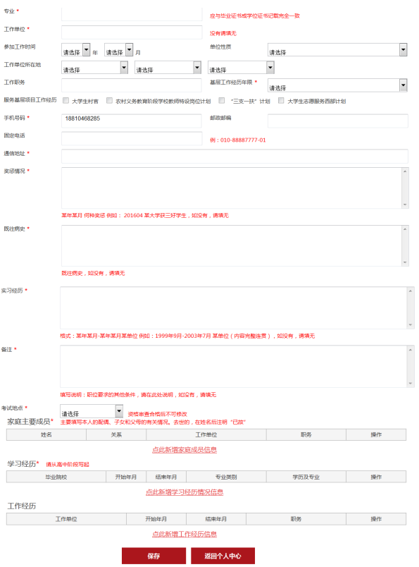 目前,中央機(jī)關(guān)及其直屬機(jī)構(gòu) 2019年度考試錄用公務(wù)員專題系統(tǒng)已經(jīng)開通,報名者在登陸系統(tǒng)進(jìn)行正式報名前,考生有一件非常重要的事情要做,就是填寫詳細(xì)信息,詳細(xì)信息關(guān)系到審核環(huán)節(jié),故填寫要準(zhǔn)確,真實。很多考生在填寫詳細(xì)信息的時候會遇到一些麻煩,不知道如何填寫,導(dǎo)致效率慢或者不能保存,在這里,中公教育專家將手把手教考生如何填寫詳細(xì)信息。