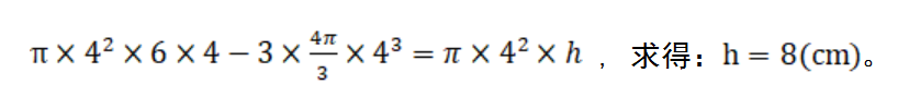 半徑為4cm的圓柱形容器內盛了一部分水。將三個半徑為4cm的小球依次放入后,水面恰好淹沒最上面的小球(水無溢出)。則小球放入之前,容器中水面高度為: