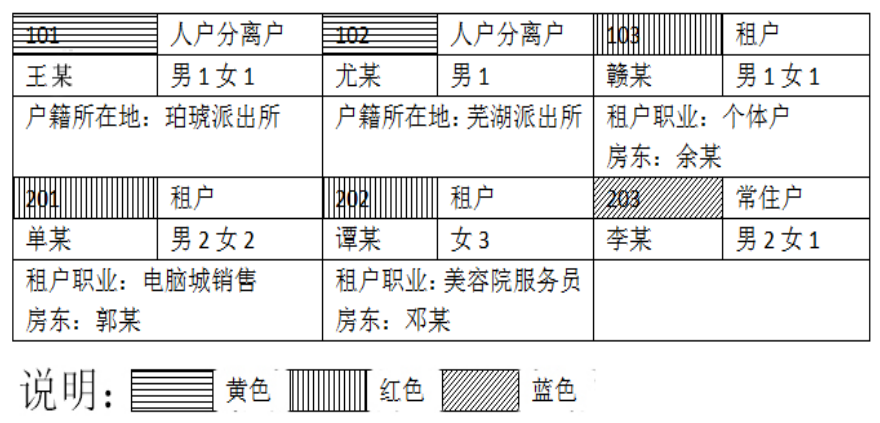C.每戶標注不同顏色表明對不同人口的管理有區(qū)別