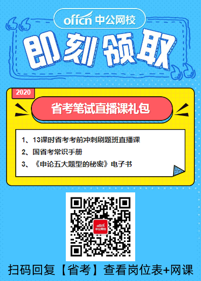 ![]() 廣東中公網(wǎng)校公眾號(hào)(gdzg999)領(lǐng)資料包 掃碼回復(fù)【省考】0元領(lǐng)筆試網(wǎng)課 |